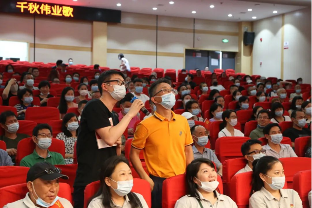 通过对不同时期红色经典音乐作品和诗词的展示,以讲+忆,互动+表演的多种形式,回溯了中国共产党百年历史的奋斗历程,全景打造了“沉浸式”党课教育。