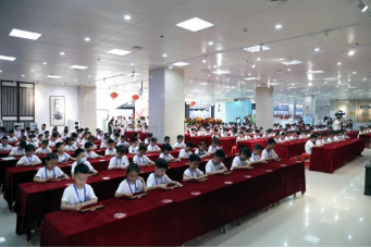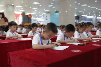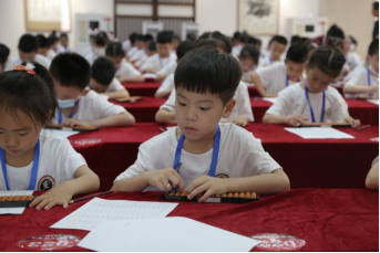 10点,小选手们入座比赛区。主持人老师带领全体参赛选手进行“热身训练”并宣读比赛规则。大赛分三场,每场需在规定时间内尽可能多答题。比赛现场气氛火热,小选手们自信答题,胸有成竹,小手指飞速拨打算盘,快速填写答题纸。“观战”领导和家长无不为大家的表现惊叹。场间的休息互动环节轻松热烈,小选手们与夏日阳光一般明媚热情,展现了冷静答题外活泼开朗的另一面。