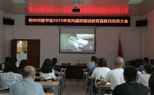 会议学习了《荆州市文化和旅游局2023年党风廉政建设宣传教育月活动方案》,并宣读了荆州市图书馆廉政工作安排。